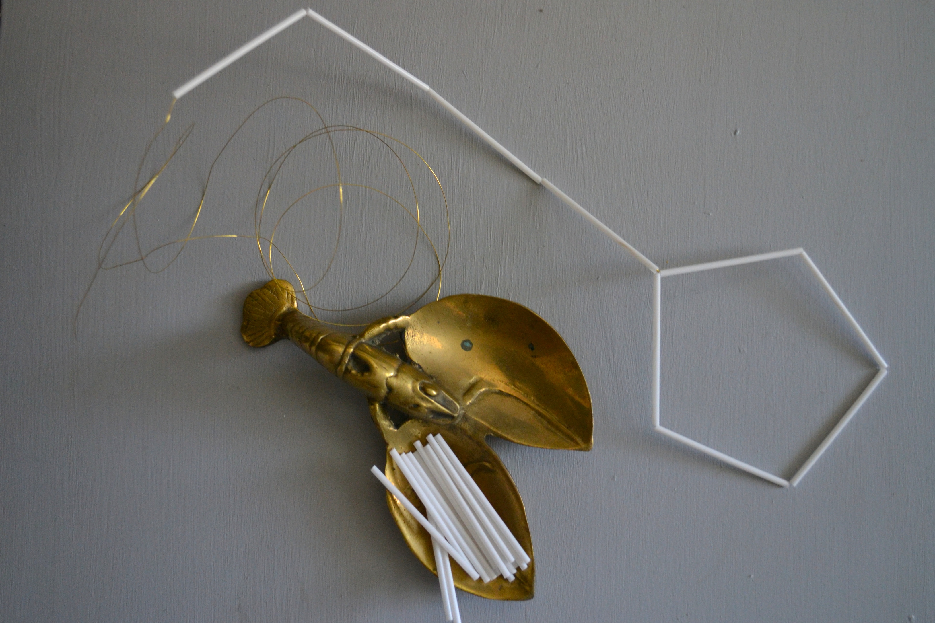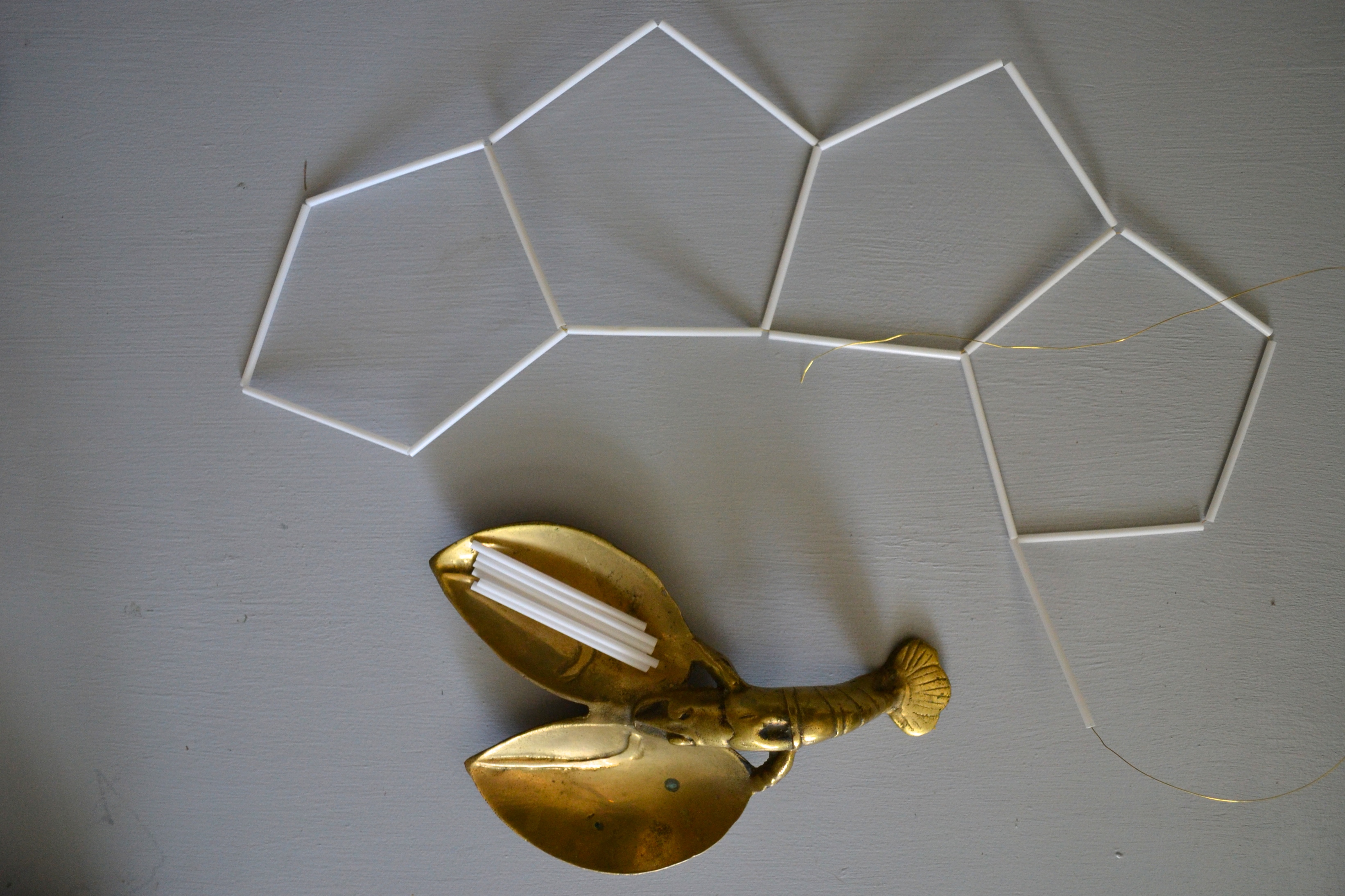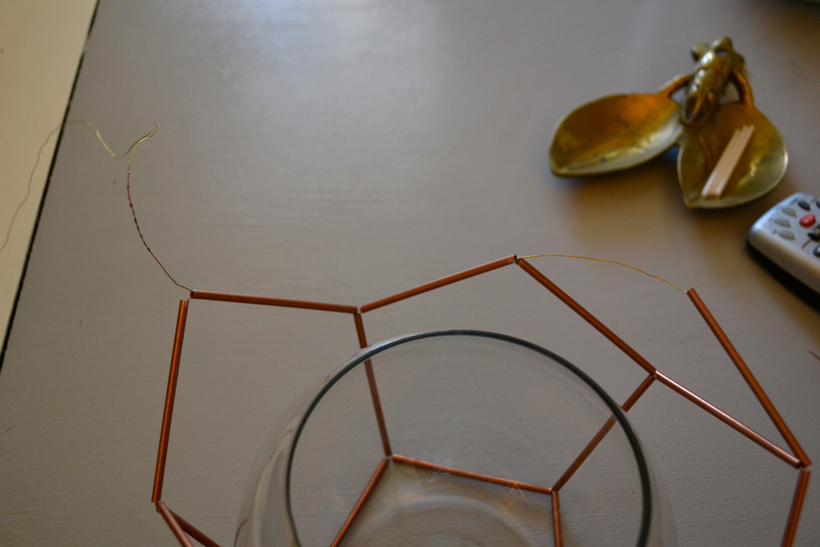 The most important step here is to start by finding something interesting on tv. Wrapping the lamp post is easy and doesn’t take tooooo long, but it is boring. Once I landed on a Downton rerun, the steps were as follows – glue, wrap, twist; glue, wrap, twist; continue ad infinitum. Jk just feels that way. I tried to keep a little bit of tension on the sisal and made sure each wrap was right up against the last. Once I was almost at the end of the second section, I screwed on the top third and wrapped that as well, leaving room for the cord to come out. I wrapped it all the way to the top and cut of the rest. (I used it for my