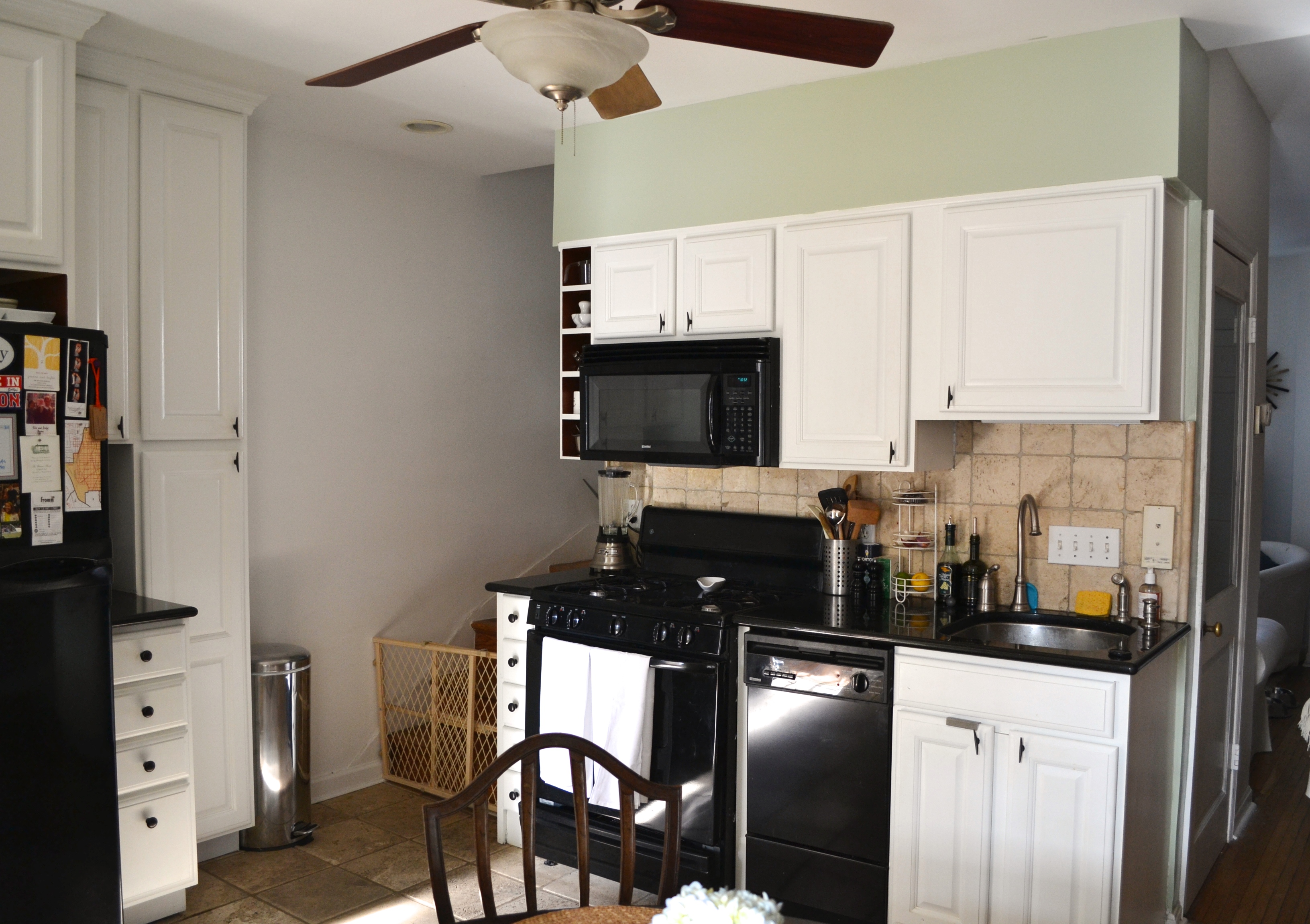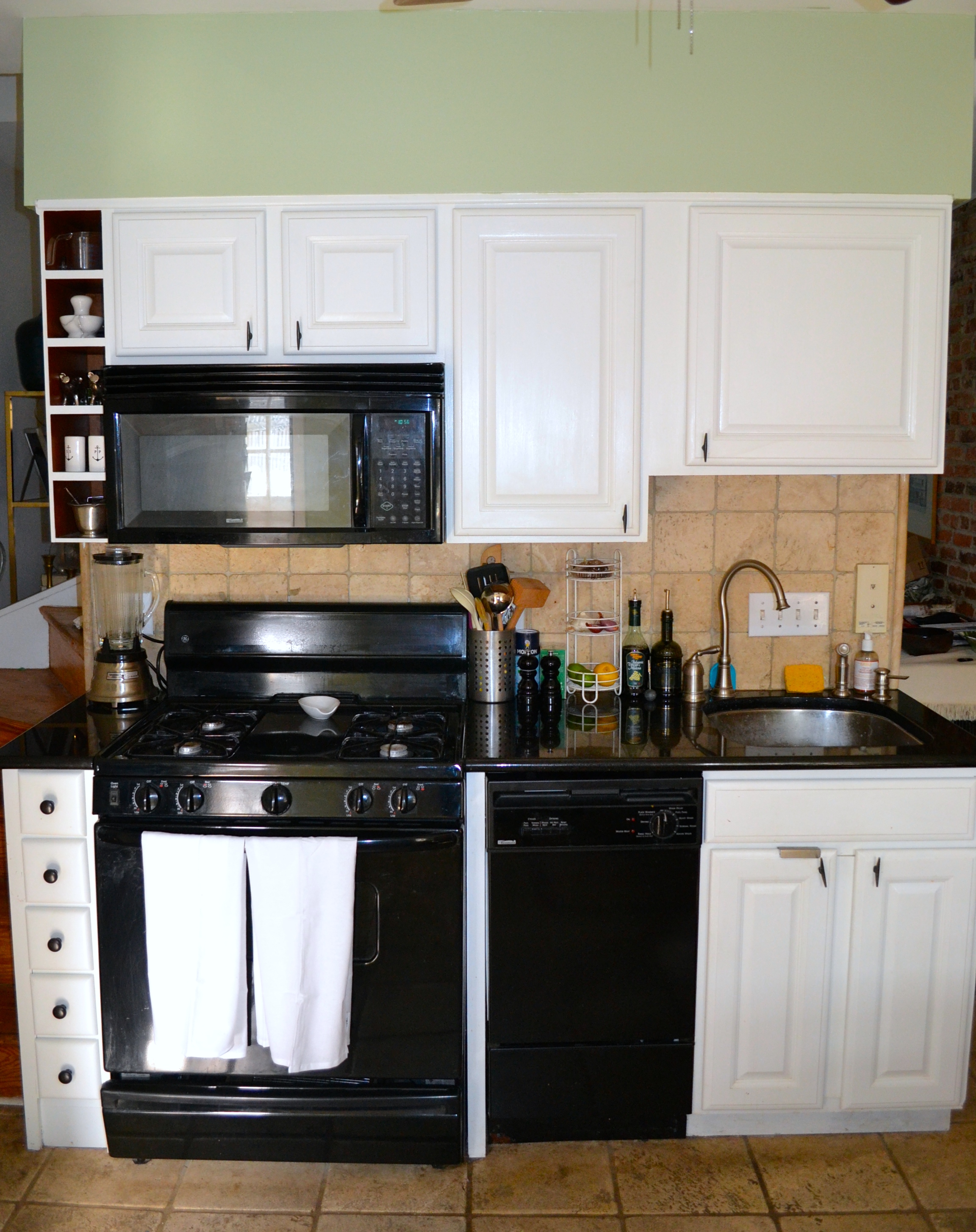 And with that, I was down to “blank slate” status. I painted the frame part with a couple of coats of regular Benjamin Moore Ultra White, sanding between coats. I stained the top and fronts of the drawers with several coats of MinWax in Special Walnut. Brush on, let sit, wipe off. Repeat. I may seal it with paste wax at some point, but it has a been a few months and so far it is holding up well.