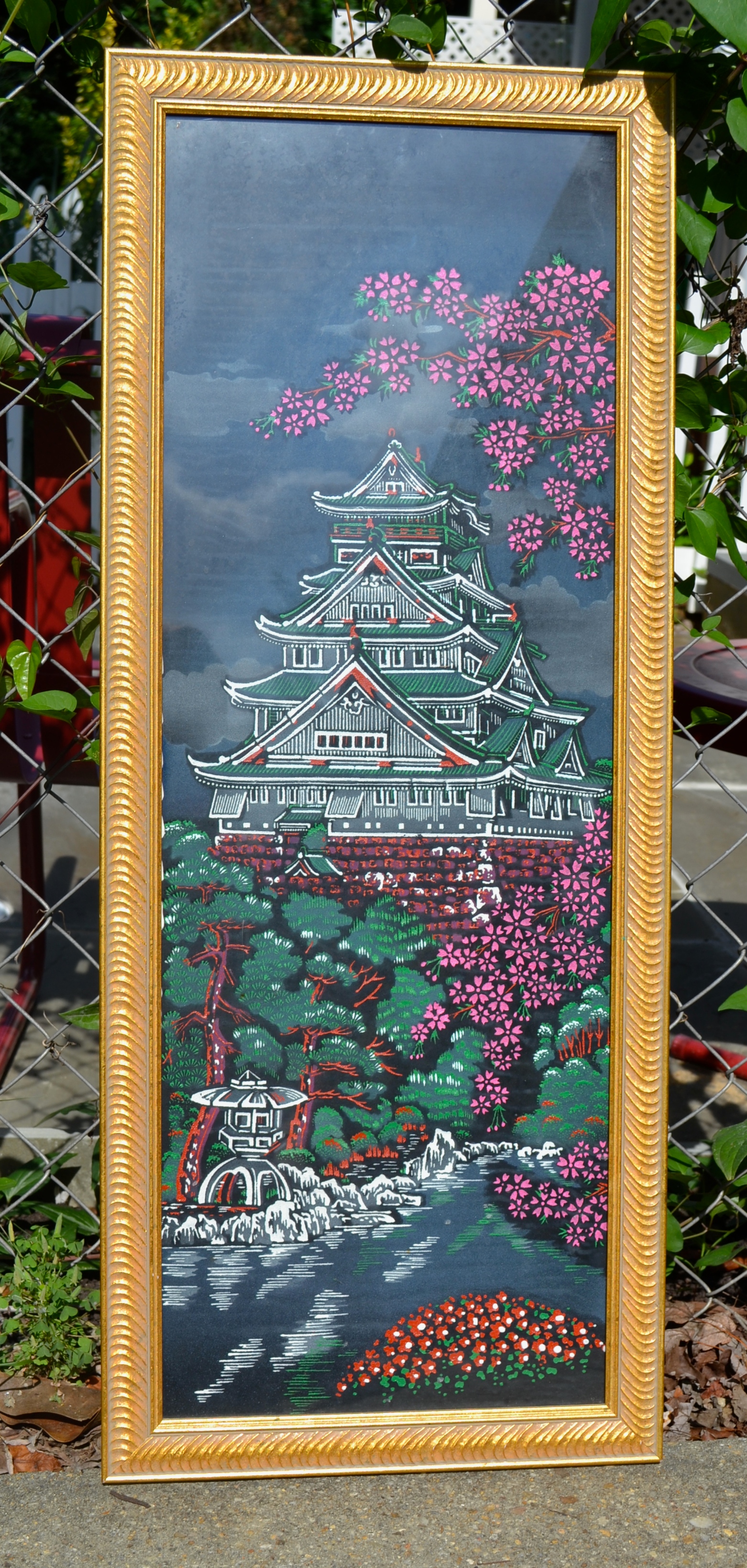 I glued the mirror to the center of the cardboard with E6000. I thought hot glue might dry too quickly and it is a pretty big surface. There isn’t much load on the cardboard since I cut a hole in it to use the existing hanging mechanism, but I did use enough glue to make sure there were not gaps around the edges.