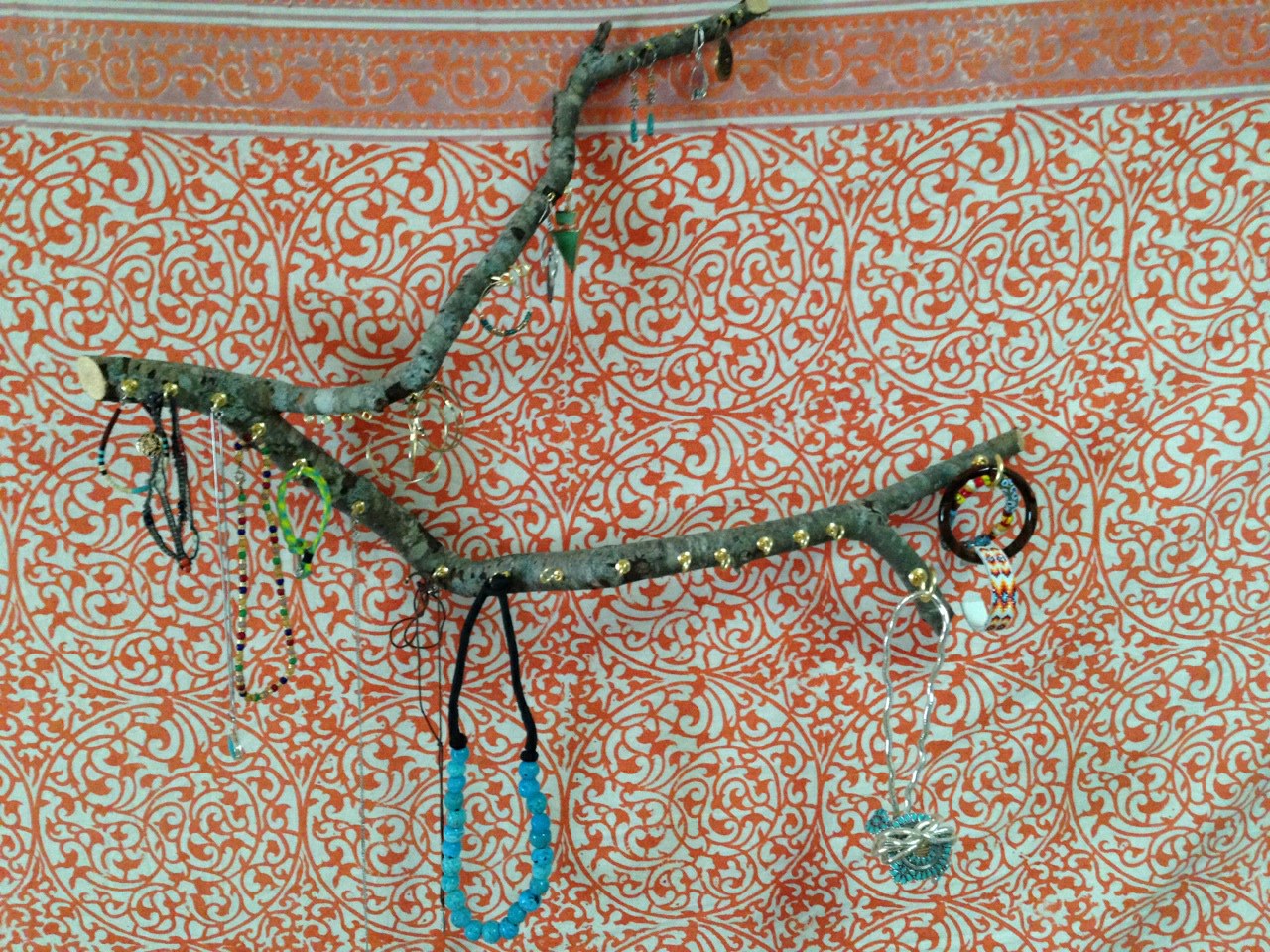 And there you go – a really cool present that anyone can make, as long as you can find yourself a stick. We had Christmas in Florida last year, so I brought a (blurry…) photo of it to give her – here it is with some of my stuff.